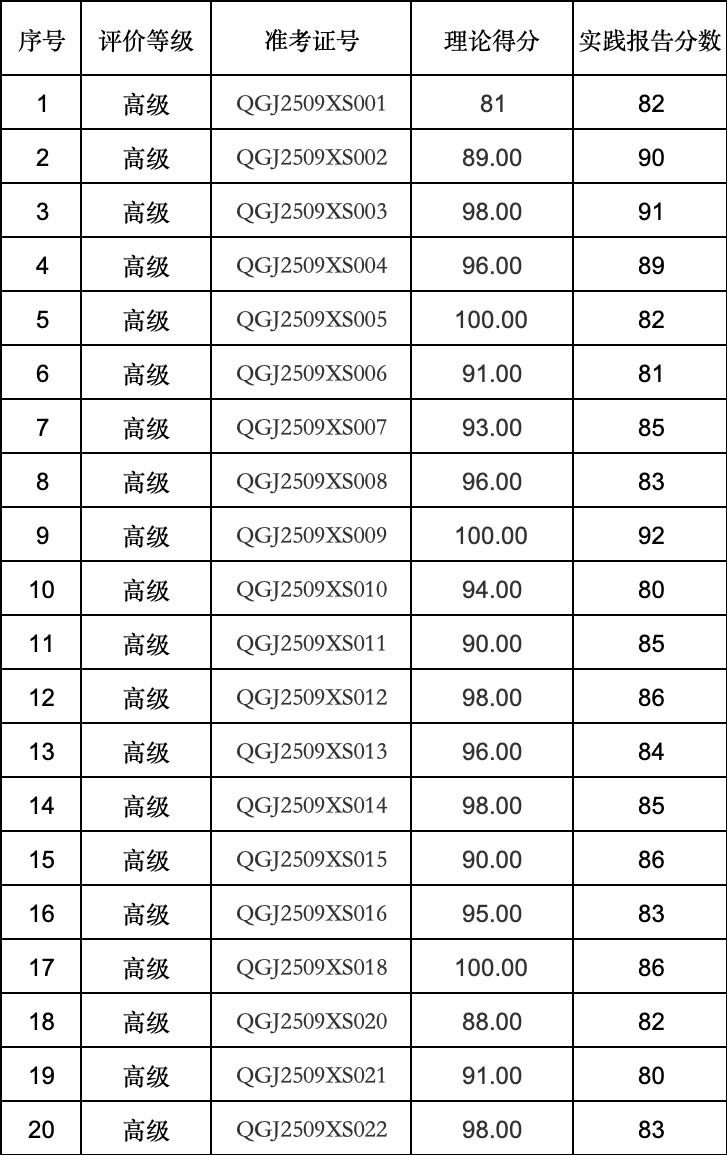 2025年9月客服联络咨询师(高级)职业技术证书,已完成理论考试、实践报告撰写。现将成绩公布如下: